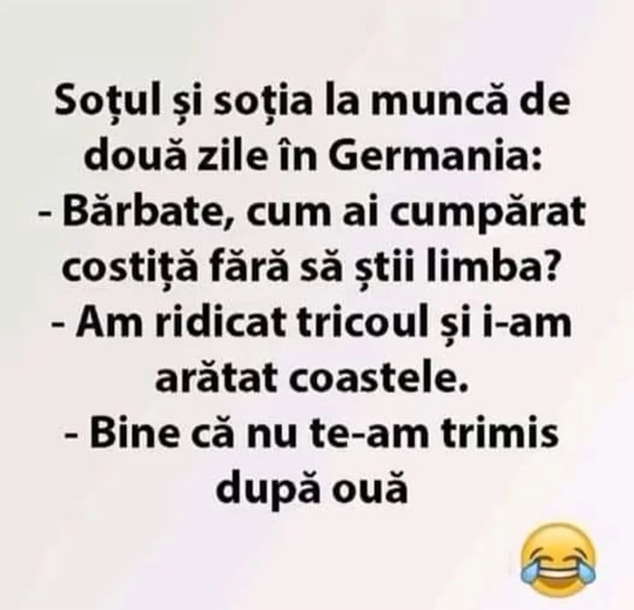 – Bărbate, cum ai cumpărat costiță fără să știi limba?
