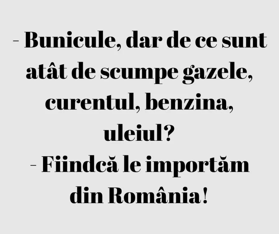 -Bunicule, dar de ce sunt atât de scumpe gazele, curentul, benzina, uleiul?