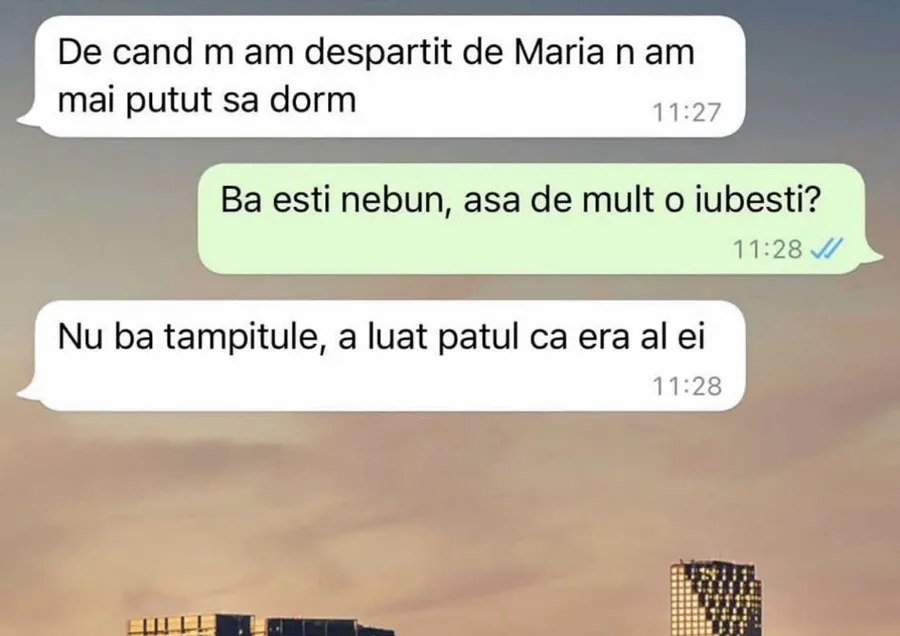 -Nu bă, tâmpitule. A luat patul, că era al ei”, este bancul zilei.