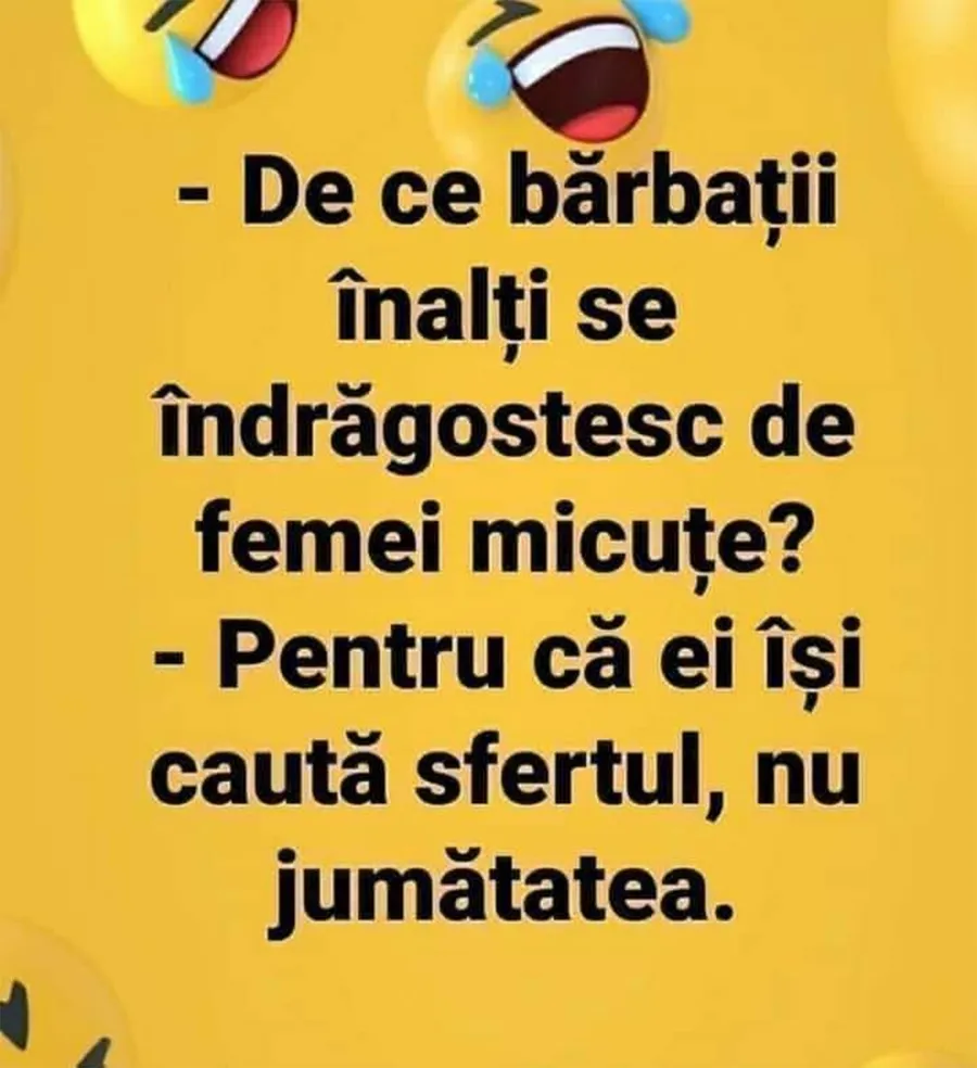 -Pentru că ei își caută sfertul, nu jumătatea”, este bancul zilei.