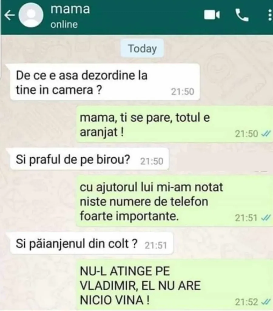 Dragi cititori, vă punem la dispoziție un banc amuzant, care vă va face ziua mult mai frumoasă. Iată discuția epică dintre o mamă și fiul său.