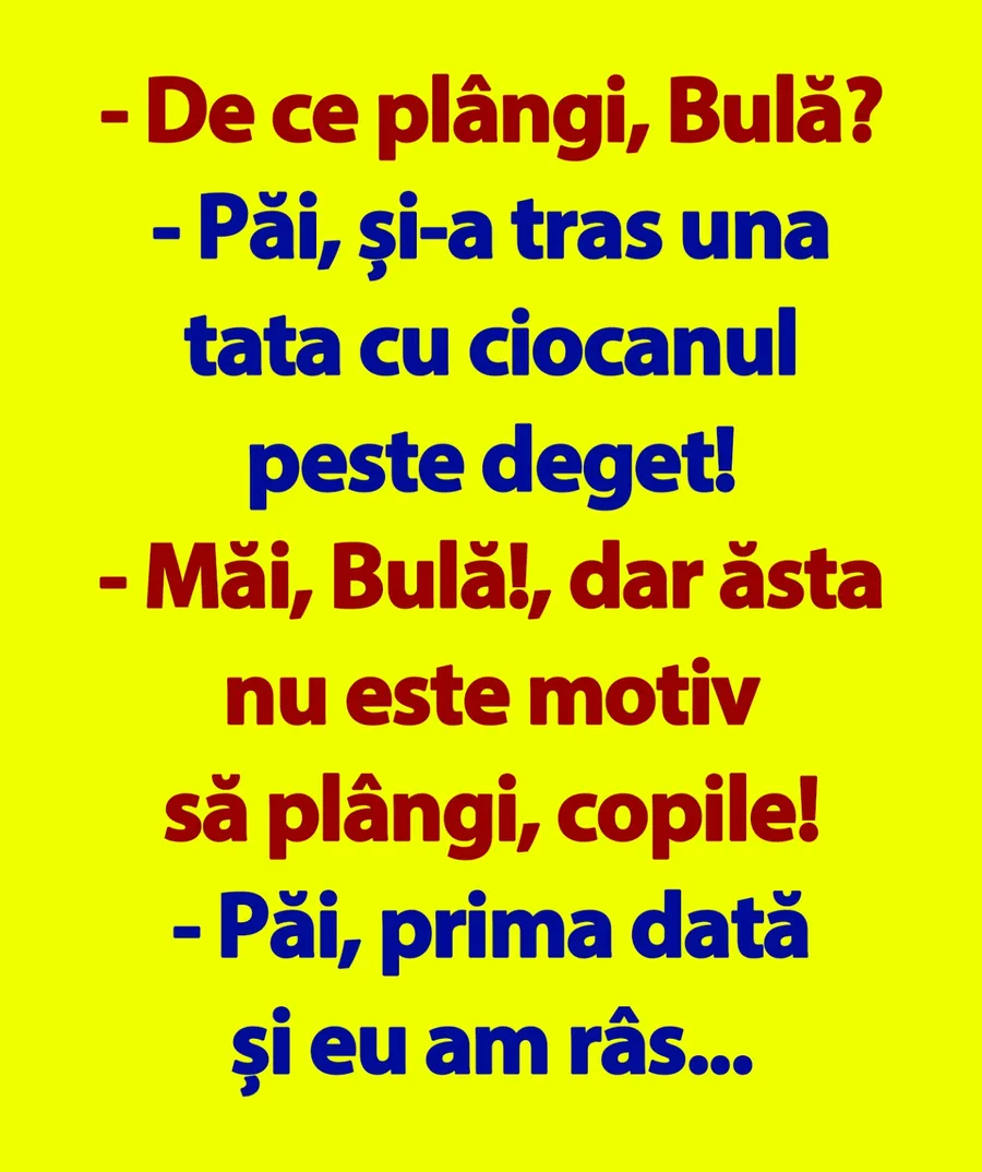 – Păi, și-a tras una tata cu ciocanul peste deget!
