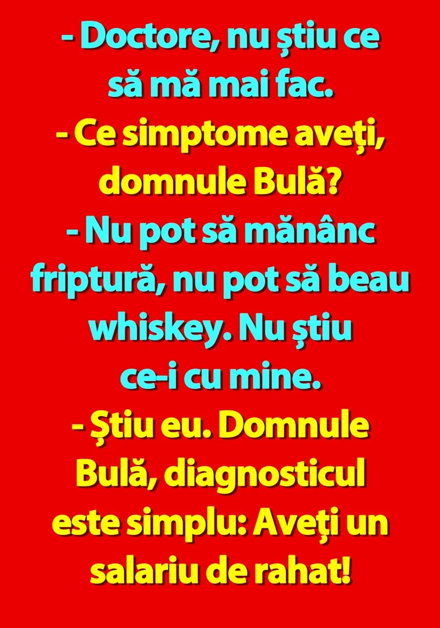 – Știu eu. Domnule Bulă, diagnosticul este simplu: Aveți un salariu de rahat!
