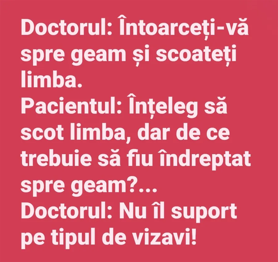 Doctorul: Întoarceți-vă spre geam și scoateți limba.