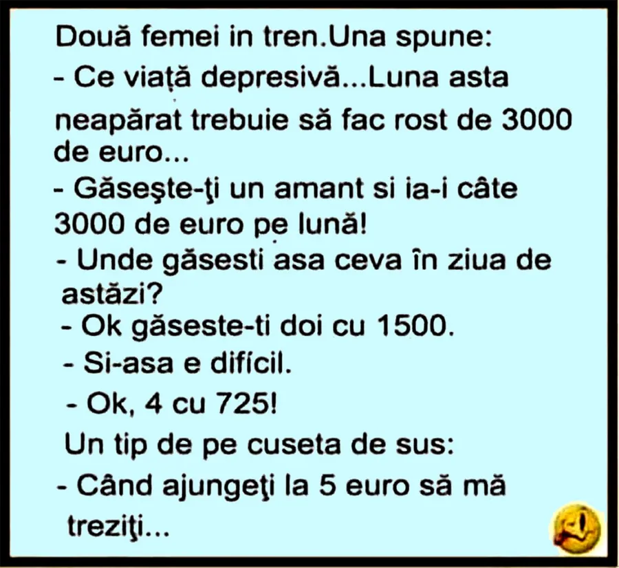 CANCAN.RO ți-a pregătit un banc amuzant, care îți va face ziua de duminică mult mai frumoasă.