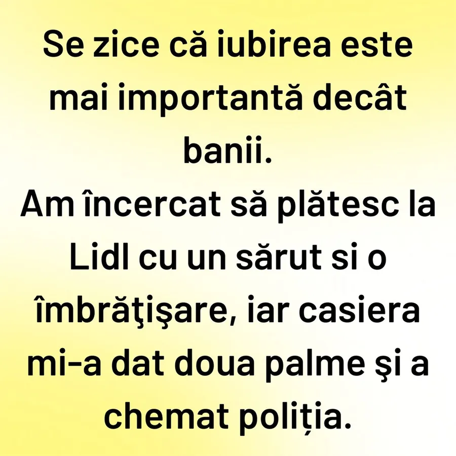 Am încercat să plătesc la Lidl cu un sărut si o îmbrăţişare, iar casiera mi-a dat doua palme şi a chemat poliția.