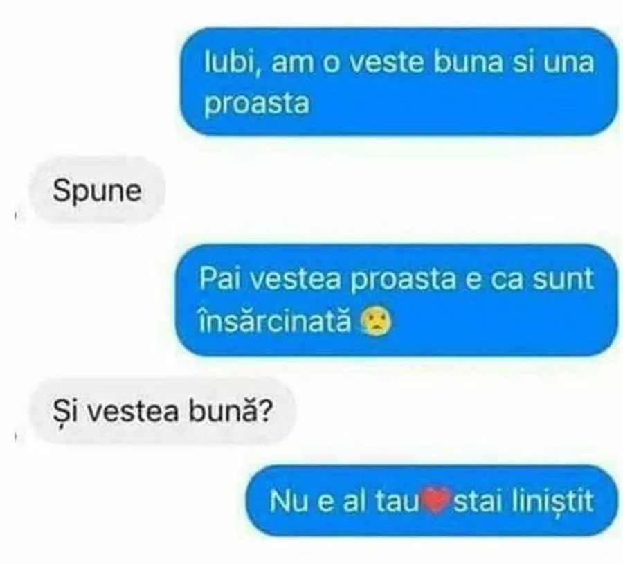 Nu trebuie să treacă nicio zi fără o porție copioasă de râs, iar pentru asta am pregătit un banc care cu siguranță o să te amuze copios. Protagoniștii de astăzi formează un cuplu, iar ea vine cu două vești importante. Deznodământul este hilar.