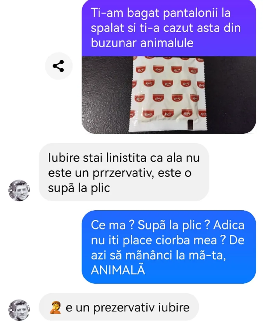 -Iubire, stai liniștită că ăla nu este un prezervativ, este o supă la plic.