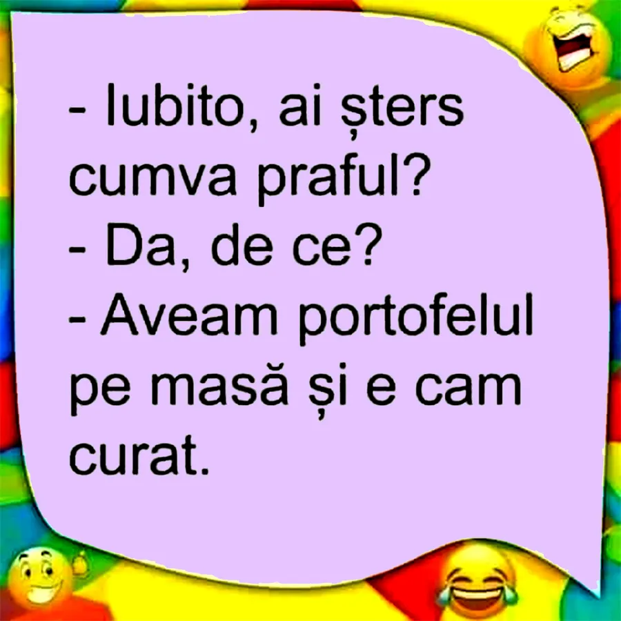 Banc. Un bărbat își întreabă soția dacă a șters praful în casă. Motivul va stârni amuzamentul! Spor la râs, dragi cititori!