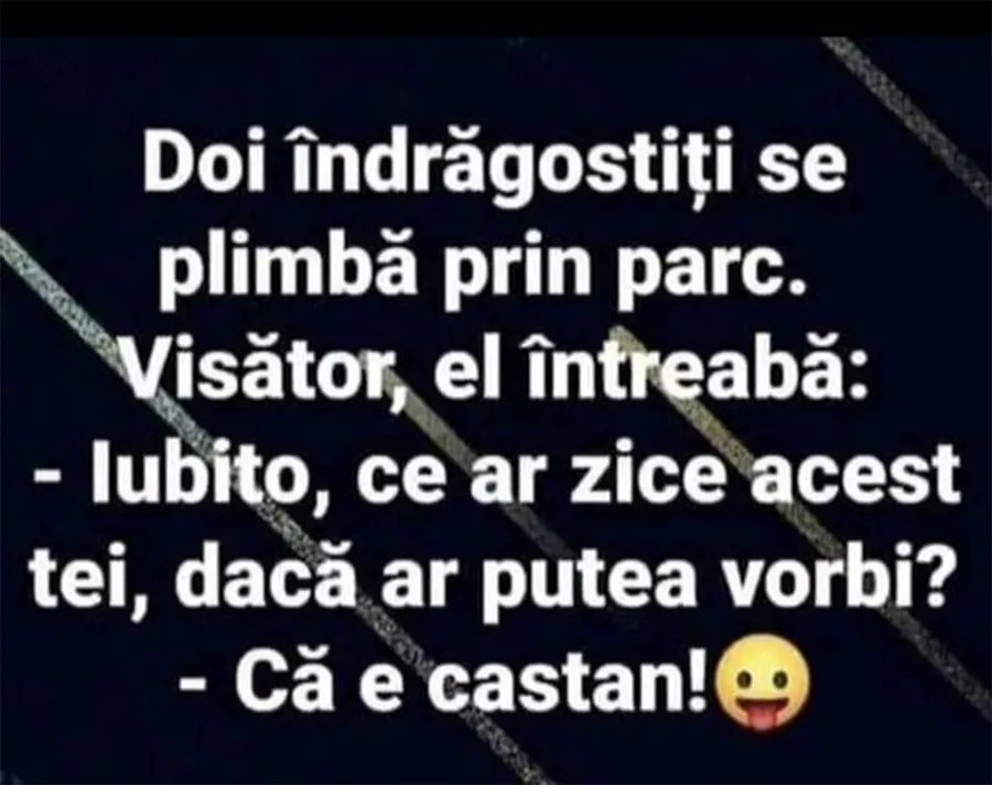 Dragă cititorule, pentru astăzi, CANCAN.RO ți-a pregătit o glumă fresh care să-ți facă duminica mai bună. Vezi ce discuție comică au doi îndrăgostiți. Râzi cu lacrimi!