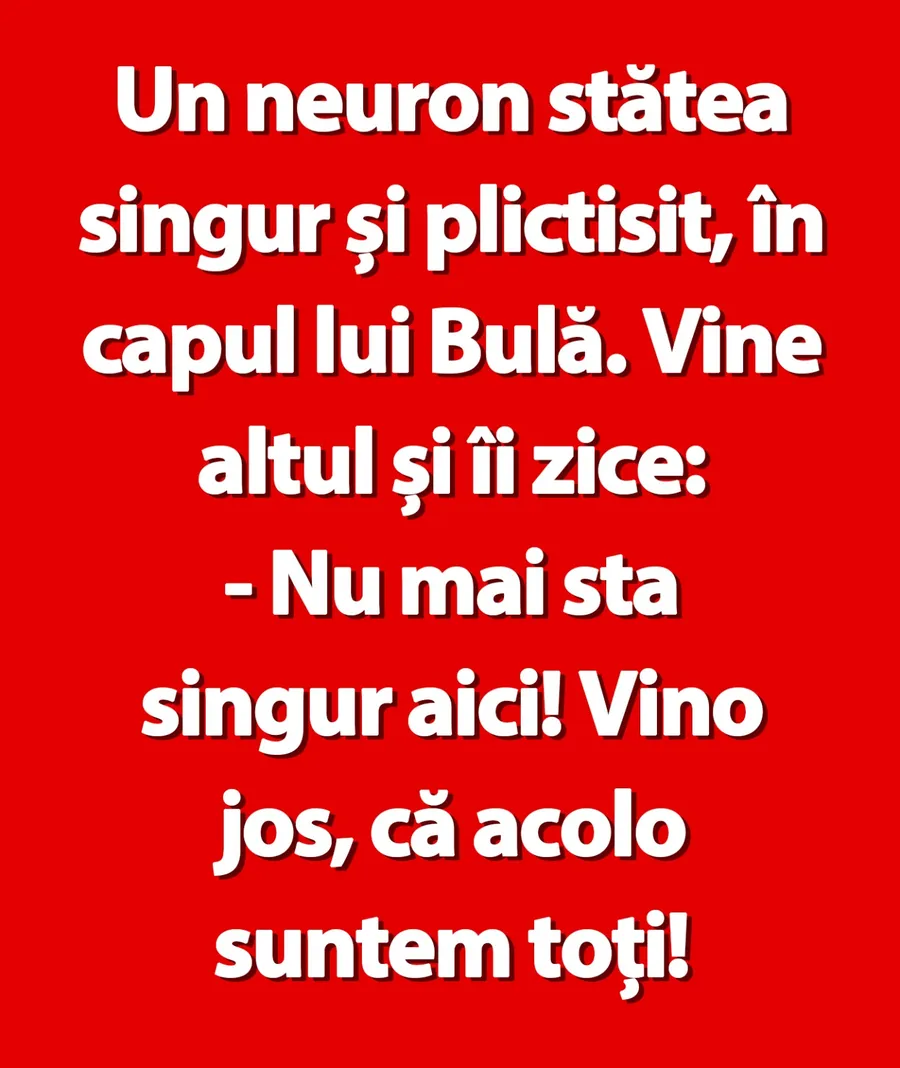 Un neuron stătea singur și plictisit, în capul lui Bulă. Vine altul și îi zice: