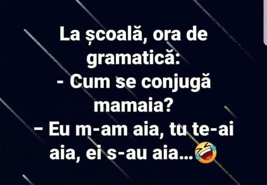 – Eu m-am aia, tu te-ai aia, ei s-au aia…