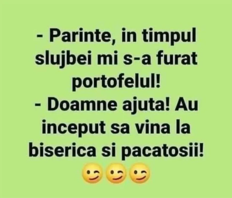 Dragă cititorule, CANCAN. RO ți-a pregătit un banc de nota 10. Un enoriaș se plânge preotului că a fost jefuit în biserică. Dialogul dintre cei doi îți va aduce zâmbetul pe buze! Spor și voie bună!