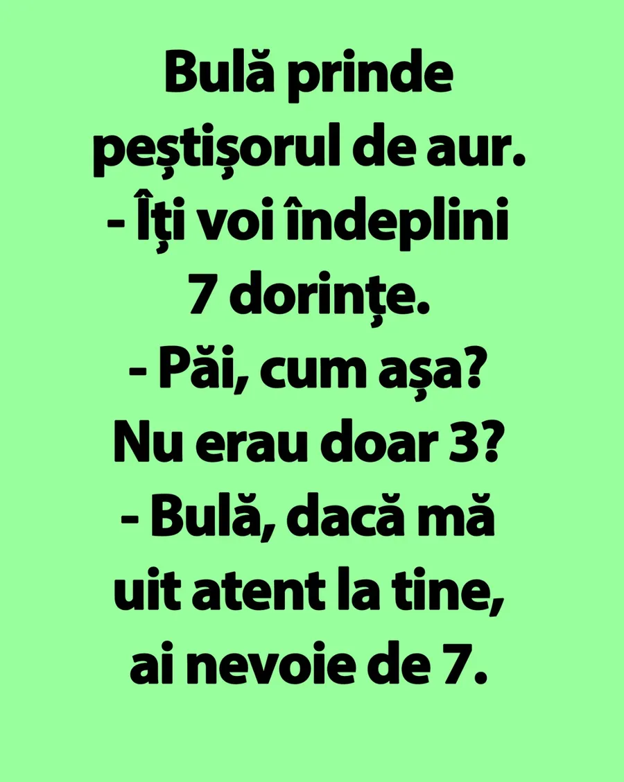 – Bulă, dacă mă uit atent la tine, ai nevoie de 7.