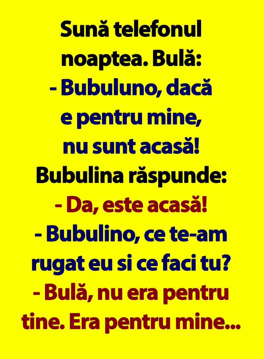 – Bubulino, dacă e pentru mine, nu sunt acasă!