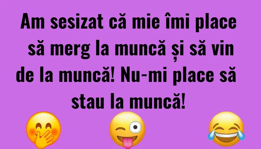 Ziua bună se cunoaște încă de dimineață, așa că trebuie începută cu zâmbetul pe buze. Iar pentru asta am pregătit un banc care cu siguranță te va amuza copios. Protagonistul de astăzi are o „relație complicată” cu munca. Deznodământul este hilar.