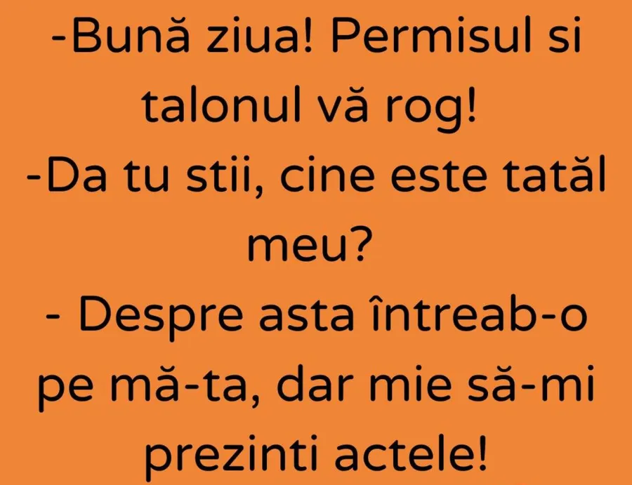 -Despre asta întreab-o pe mă-ta, dar mie să-mi prezinți actele”, este bancul zilei.