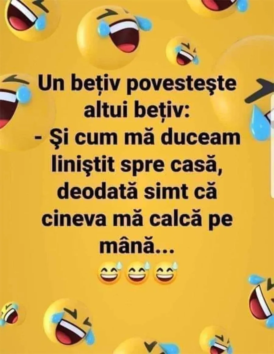 -Și cum mă duceam liniștit spre casă, deodată simt că cineva mă calcă pe mână…