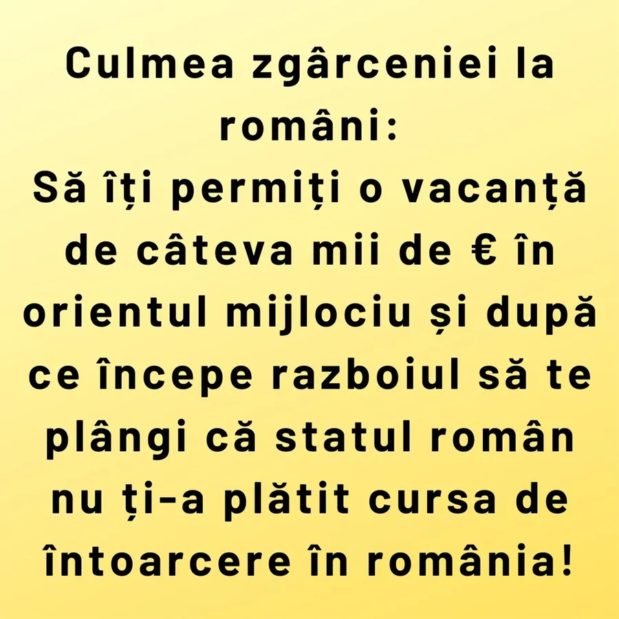 Să îți permiți o vacanță de câteva mii de € în orientul mijlociu și după ce începe războiul să te plângi că statul român nu ți-a plătit cursa de întoarcere în România!