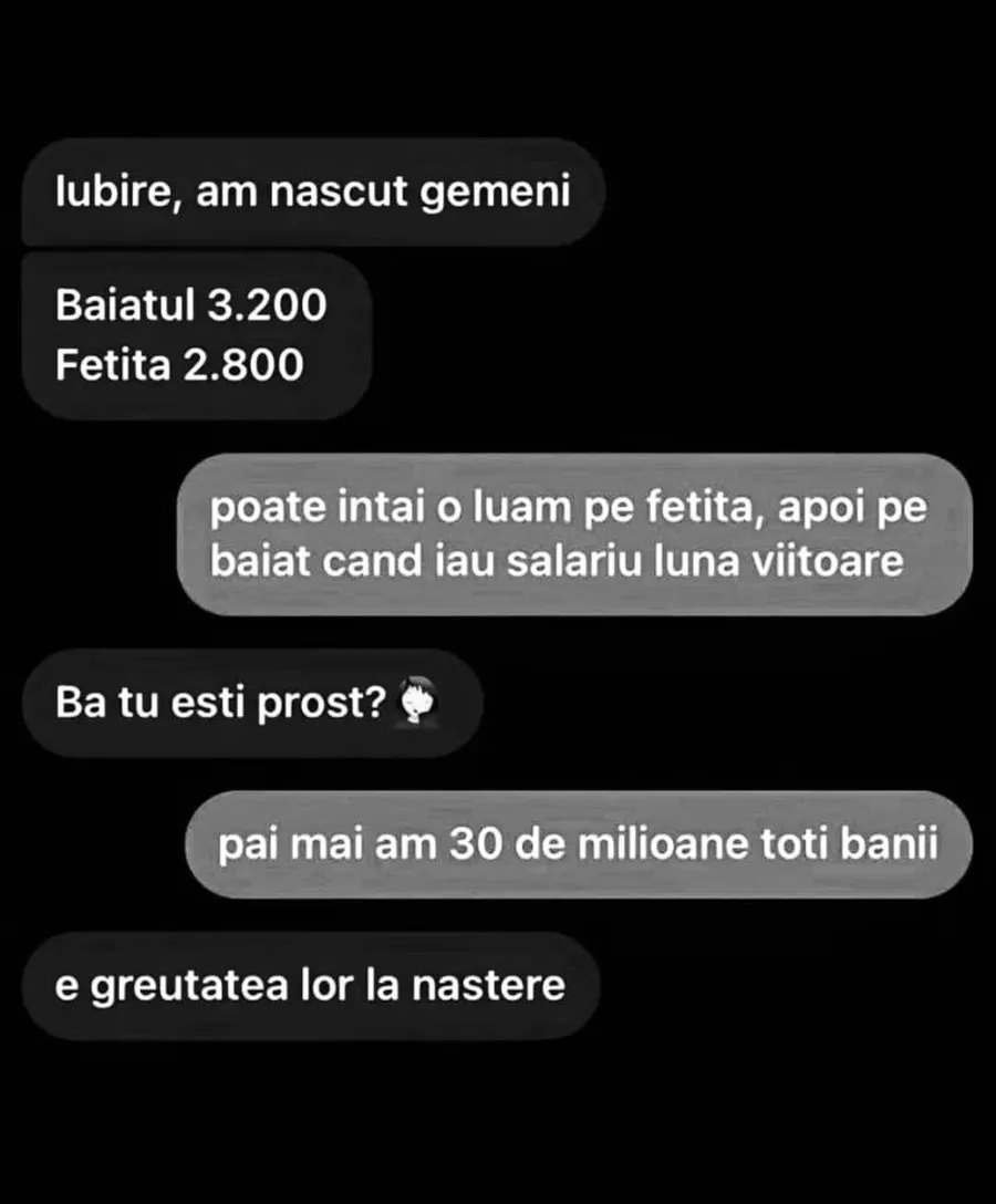 Iubire, am născut gemeni. Băiatul 3.200, fetița 2.800