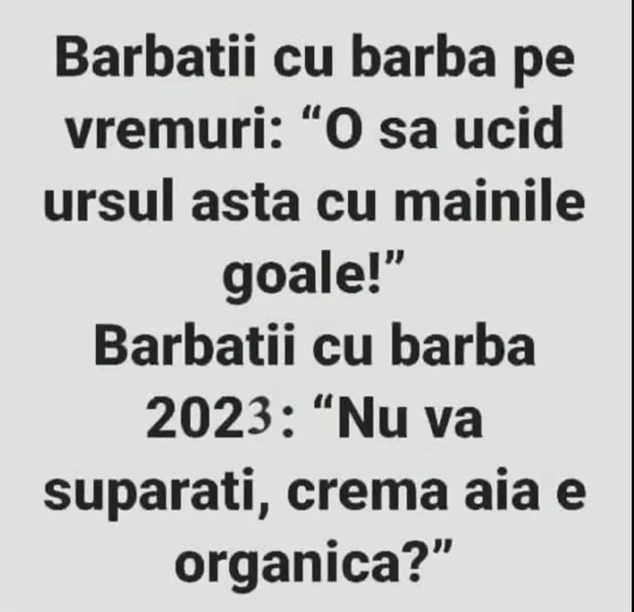 Bancul începutului de săptămână. Vă încântăm în această zi de luni, 11 septembrie, cu alte bancuri savuroase cu și despre bărbați. Iată mai jos ce se spune despre bărbații cu barbă de pe vremuri și din prezent!