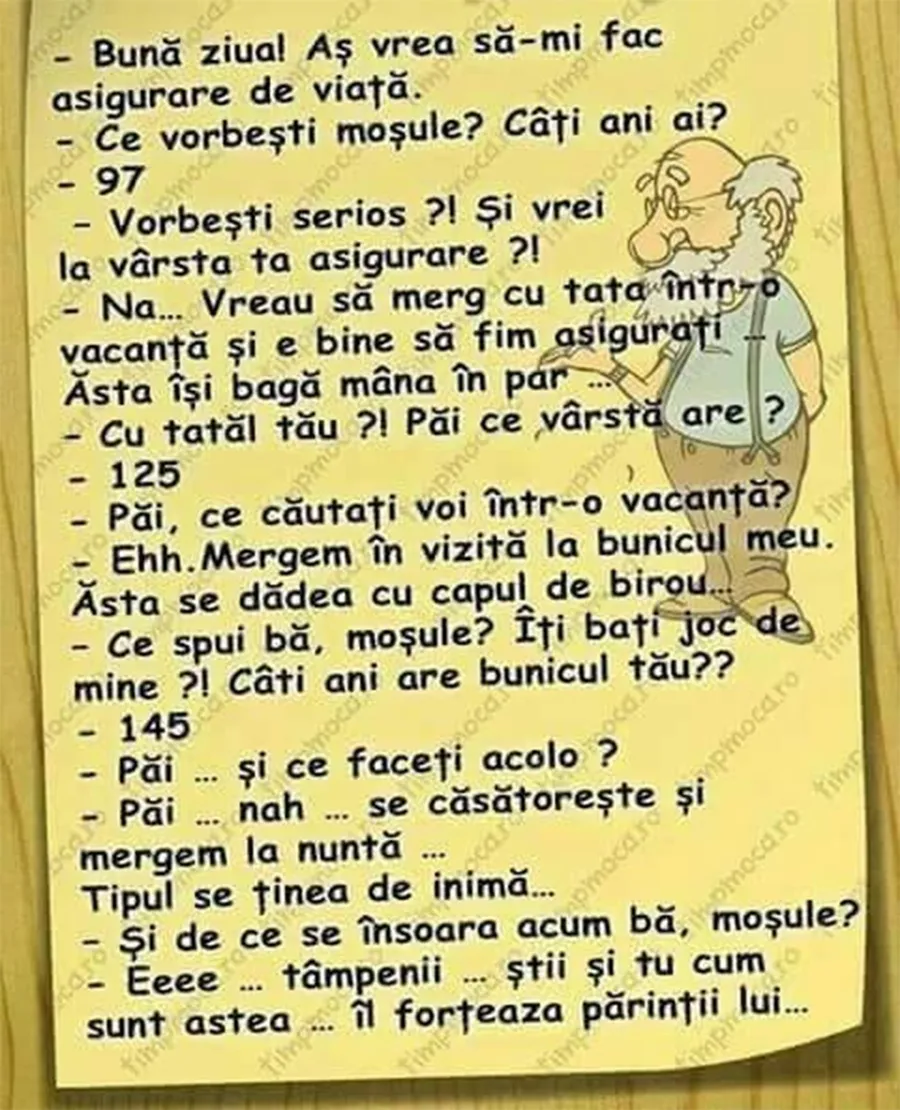 – Vorbești serios? Și vrei la vârsta ta asigurare?