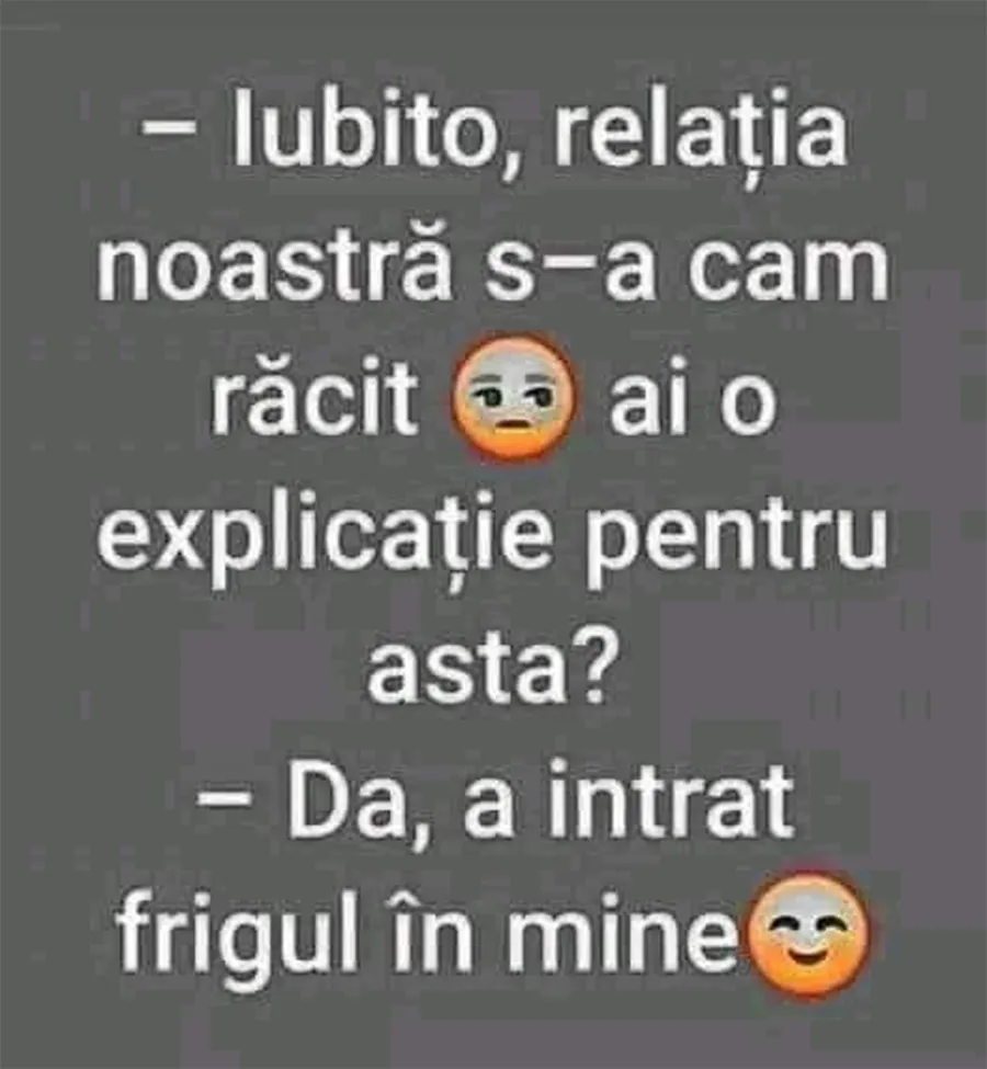 – lubito, relația noastră s-a cam răcit ai o explicație pentru asta?