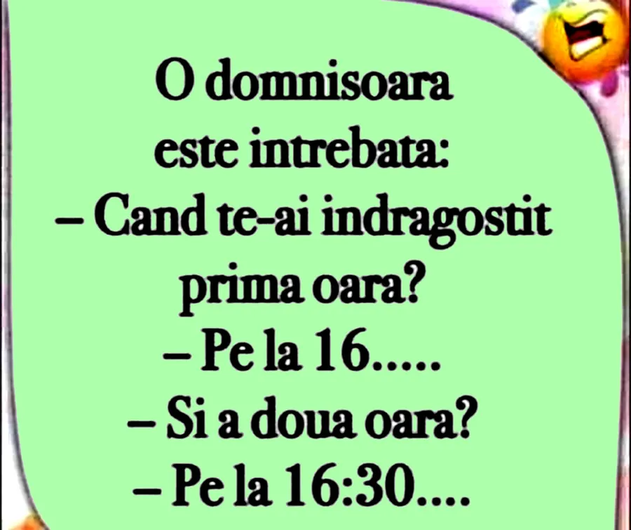 Dragi cititori, CANCAN.RO v-a pregătit un banc amuzant pentru o seară plină de zâmbete și un sfârșit de săptămână reușit. Ești pregătit să râzi cum nu ai mai făcut-o de mult timp? Spor și voie bună!