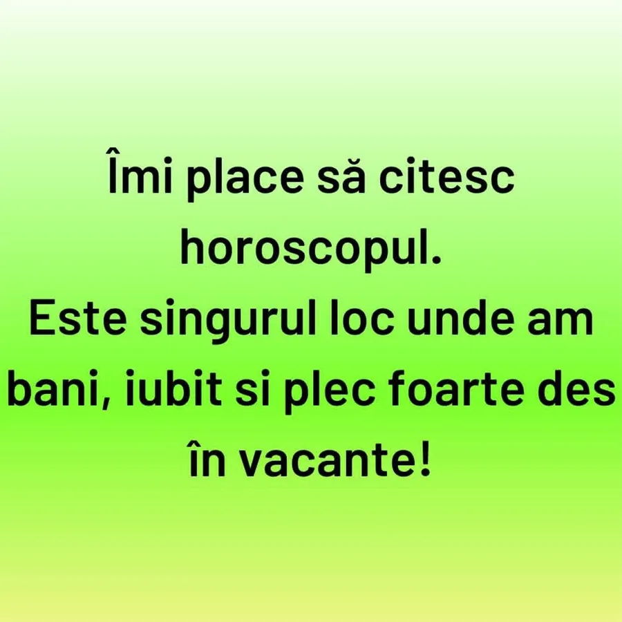 Îmi place să citesc horoscopul. Este singurul loc unde am bani, iubit și plec foarte des în vacanțe!