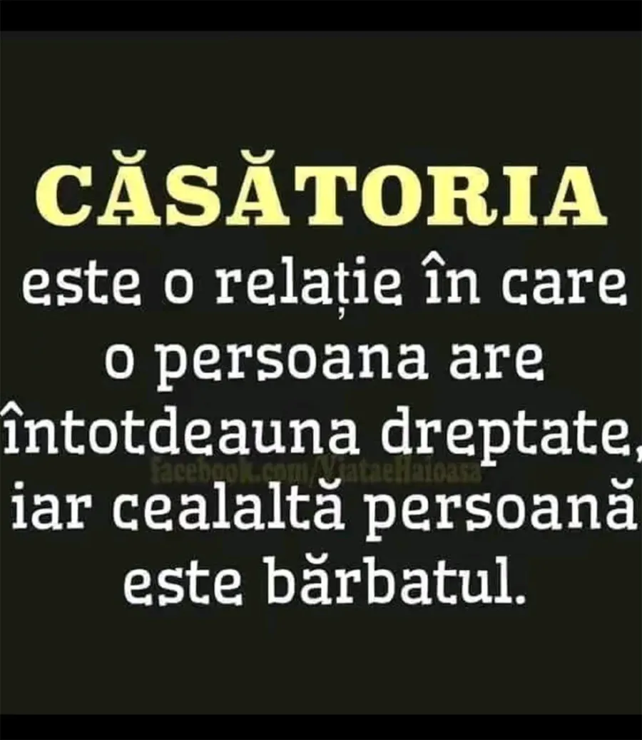 Dragi cititori, CANCAN.RO vrea să vă aducă zâmbetul pe buze în acest sfârșit de săptămână, așa că v-a pregătit un banc amuzant. Definiția căsătoriei, în opinia unei femei. Ești pregătit/ă să râzi cu lacrimi? Hai să dăm drumul distracției!
