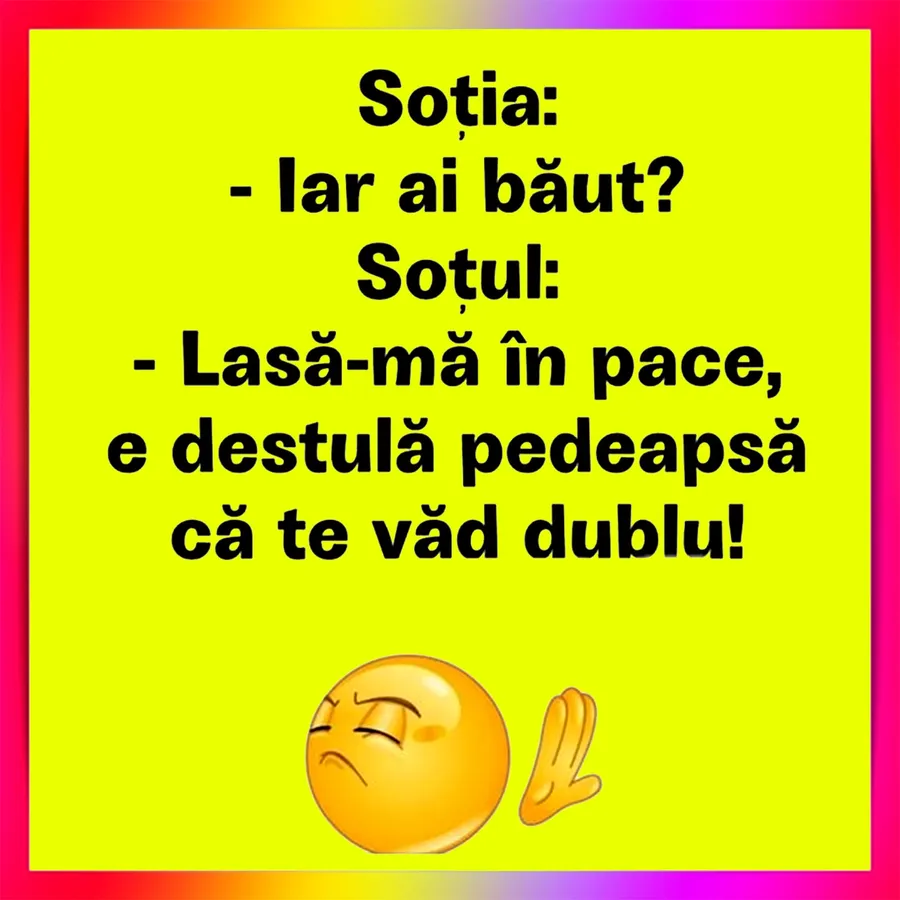 Soțul: ”Lasă-mă în pace, e destulă pedeapsă că te văd dublu!”