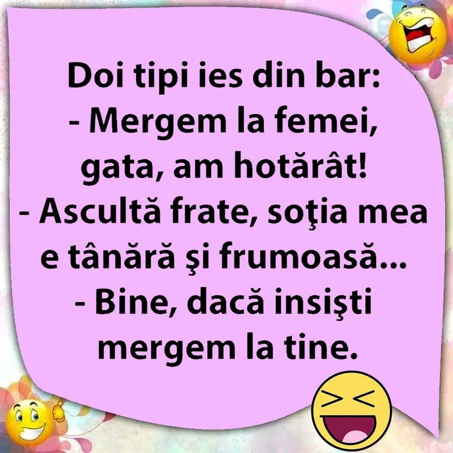 Dragi cititori, CANCAN.RO vrea să vă aducă zâmbetele pe buze, așa că vă pune la dispoziție un nou banc. Vrem să vă înveselim în acest sfârșit de săptămână, așa că vă prezentăm o glumă hilară. Vei râde cu lacrimi! Ești pregătit/ă?