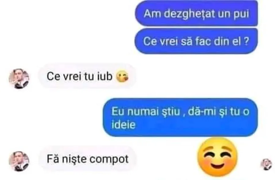 „-Am dezghețat un pui. Ce vrei să fac din el?