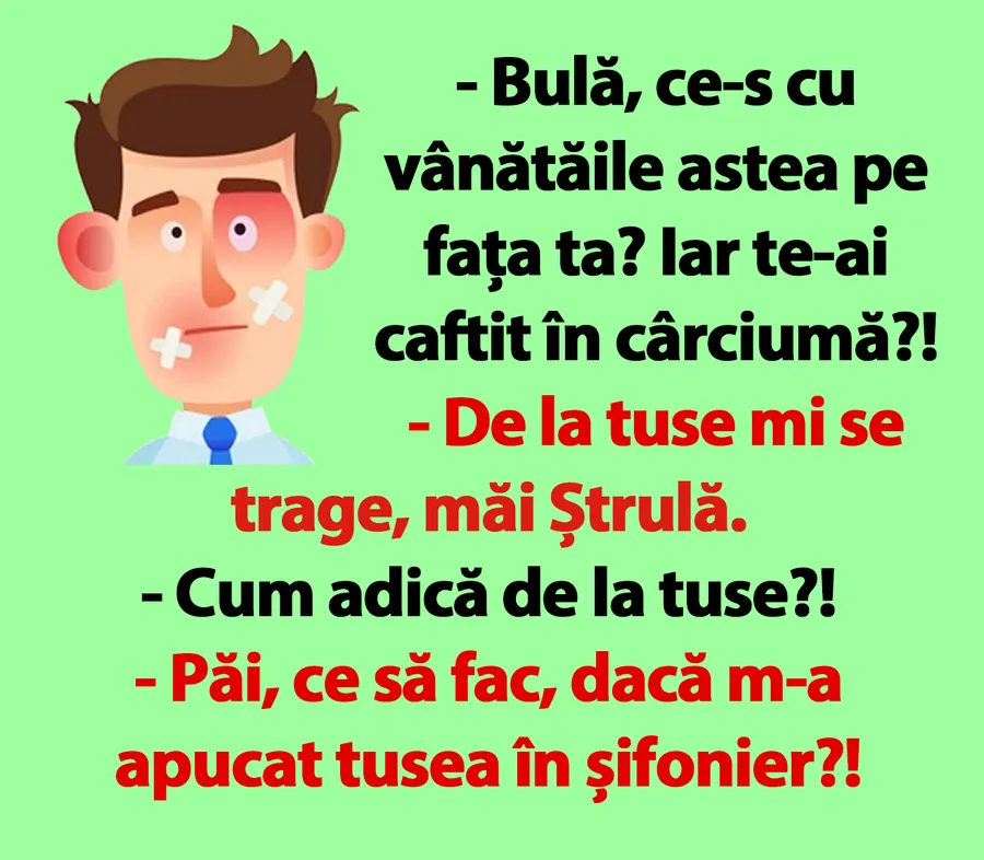 – Păi, ce să fac, dacă m-a apucat tusea în șifonier?!”