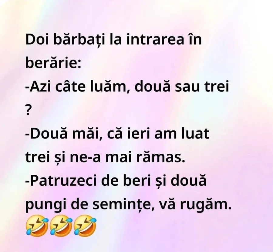CANCAN.RO îți aduce și astăzi zâmbetul pe buze! Pentru că o doză de umor face ziua mai frumoasă, ți-am pregătit acest banc, care sigur te va face să râzi cu lacrimi. Lasă grijile deoparte, ia-ți câteva clipe de relaxare și bucură-te de o porție zdravănă de râs.