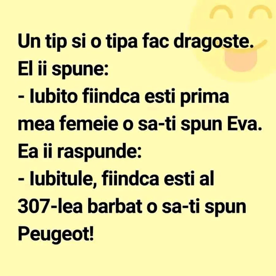 – Iubitule, pentru că ești al 307-lea bărbat o să-ți spun Peugeot!”.