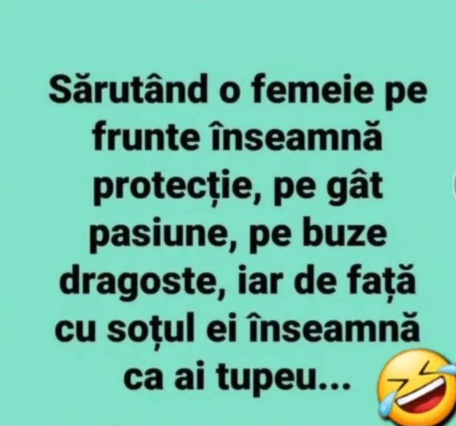 „Sărutând o femeie pe femeie pe frunte înseamnă protecție, pe gât pasiune, pe buze dragoste, iar de față cu soțul ei înseamnă că ai tupeu…” 😂