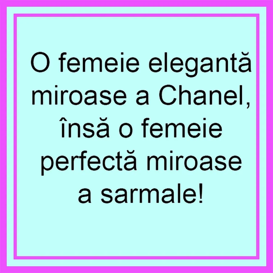 O femeie elegantă miroase a Chanel, însă o femeie perfectă miroase a sarmale!