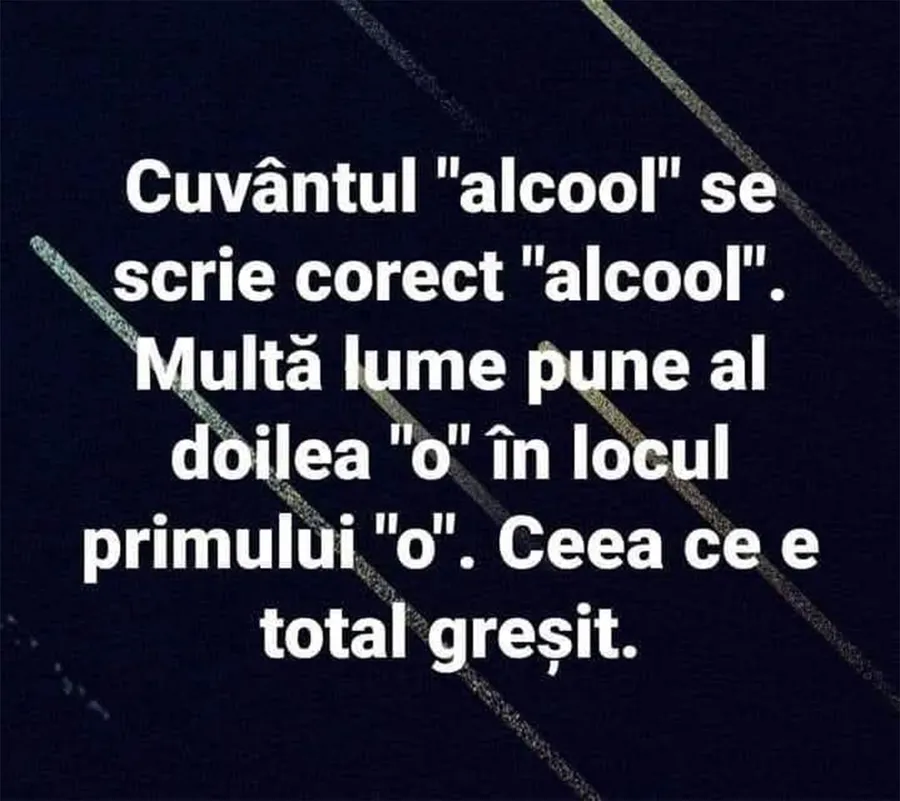 Este weekend, zi de relaxare și voie bună. Dăm startul cu un banc, care cu siguranță o să te amuze copios. Problema care se pune în discuție astăzi este cum se scrie, de fapt, cuvântul „alcool”. Deznodământul este hilar.