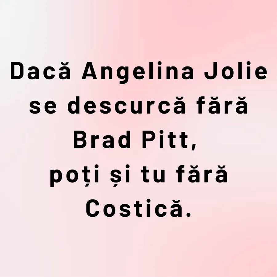 Bancul zilei de vineri: Dacă Angelina Jolie se descurcă fără Brad Pitt, poți și tu fără Costică.