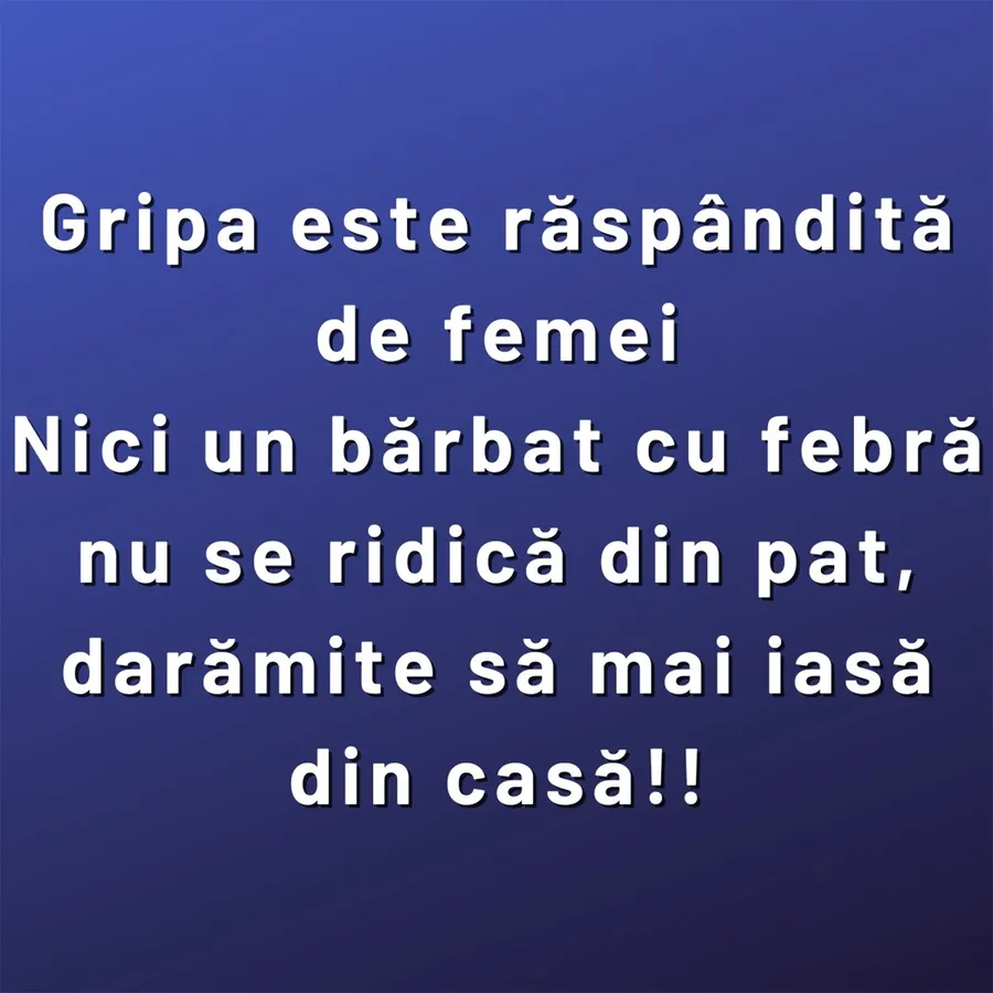 Întotdeauna a existat o diferență amuzantă între bărbați și femei, mai ales când vine vorba de boală. Bancul de mai jos îți va aduce zâmbetul pe buze și te va face să râzi.