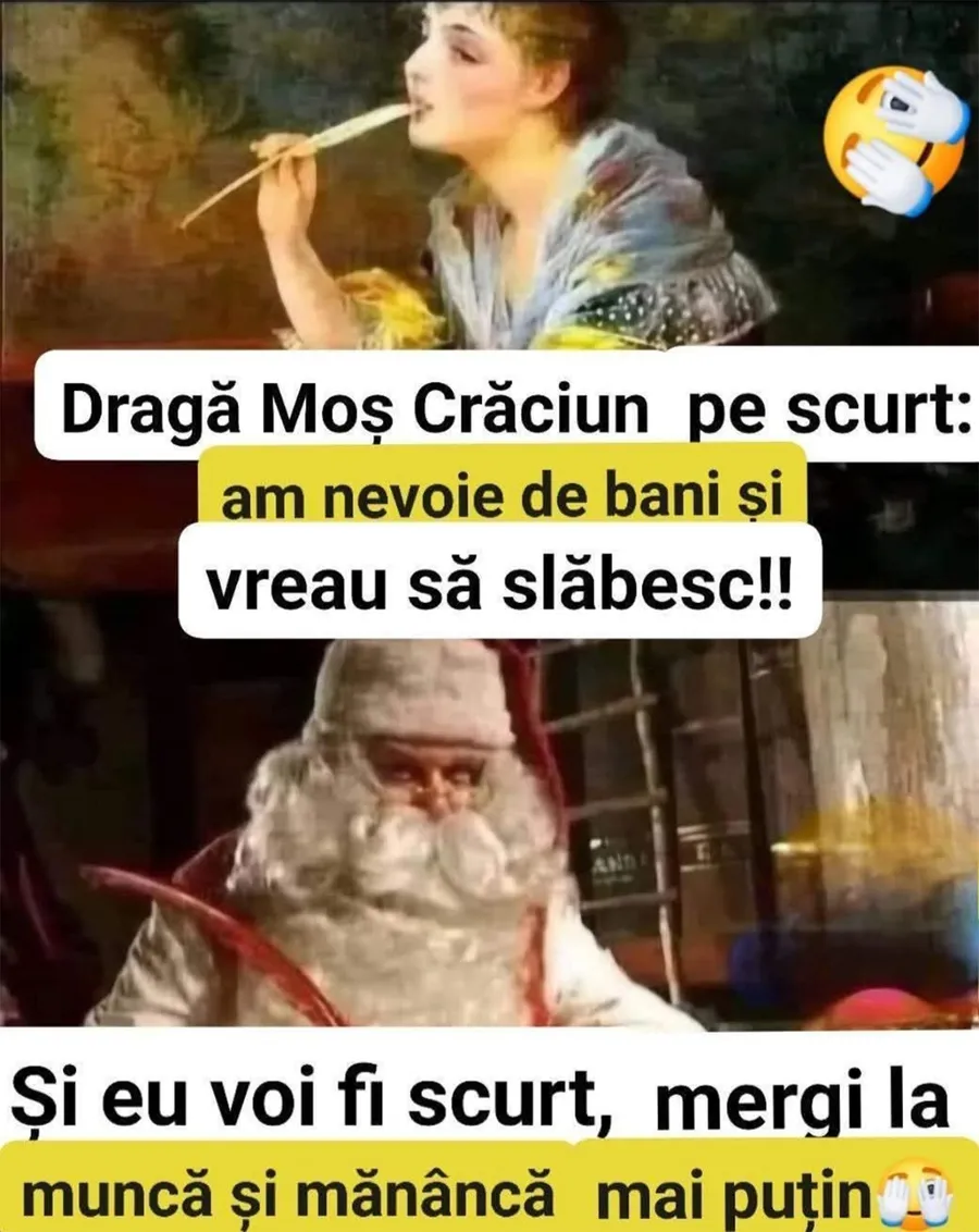 Dragă Moș Crăciun pe scurt: am nevoie de bani și vreau să slăbesc.
