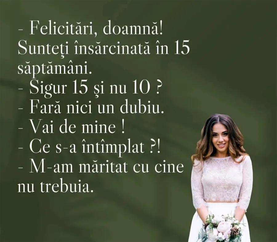 – Felicitări, doamnă! Sunteţi însărcinată în 15 săptămâni.