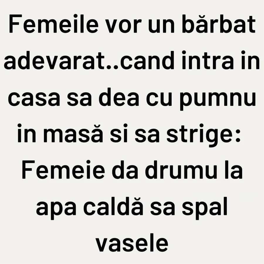 – Femeie, dă drumul la apa caldă să spăl vasele!”.