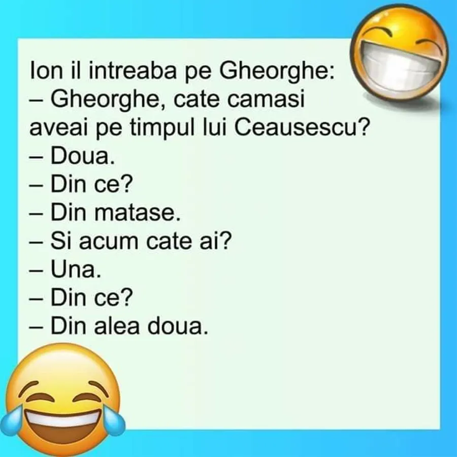 Ion îl întreabă pe Gheorghe: – Gheorghe, câte cămăși