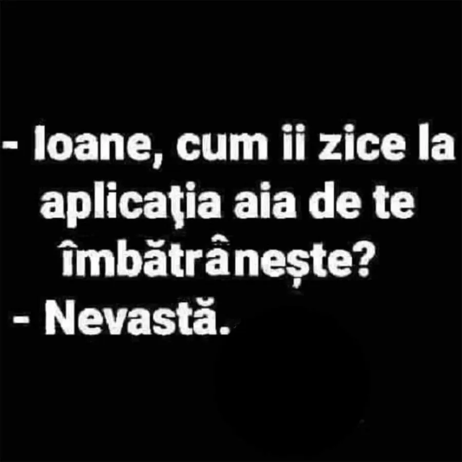 – Ioane, cum îi zice la aplicația aia de te îmbătrânește?