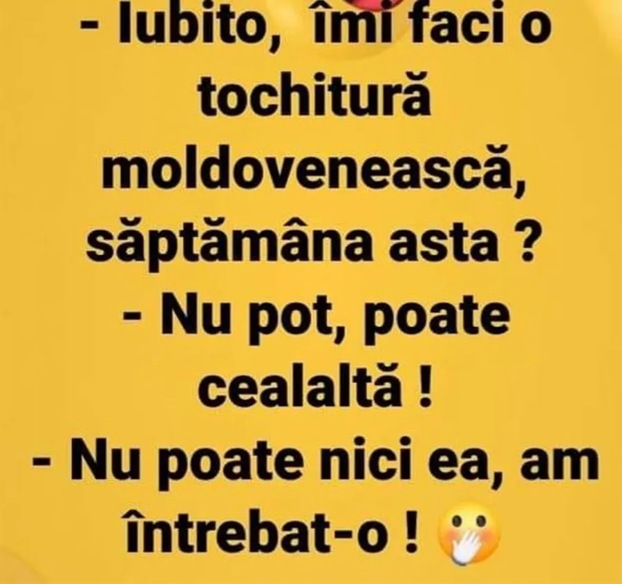 – Iubito, îmi faci o tochitură moldovenească, săptămâna asta?