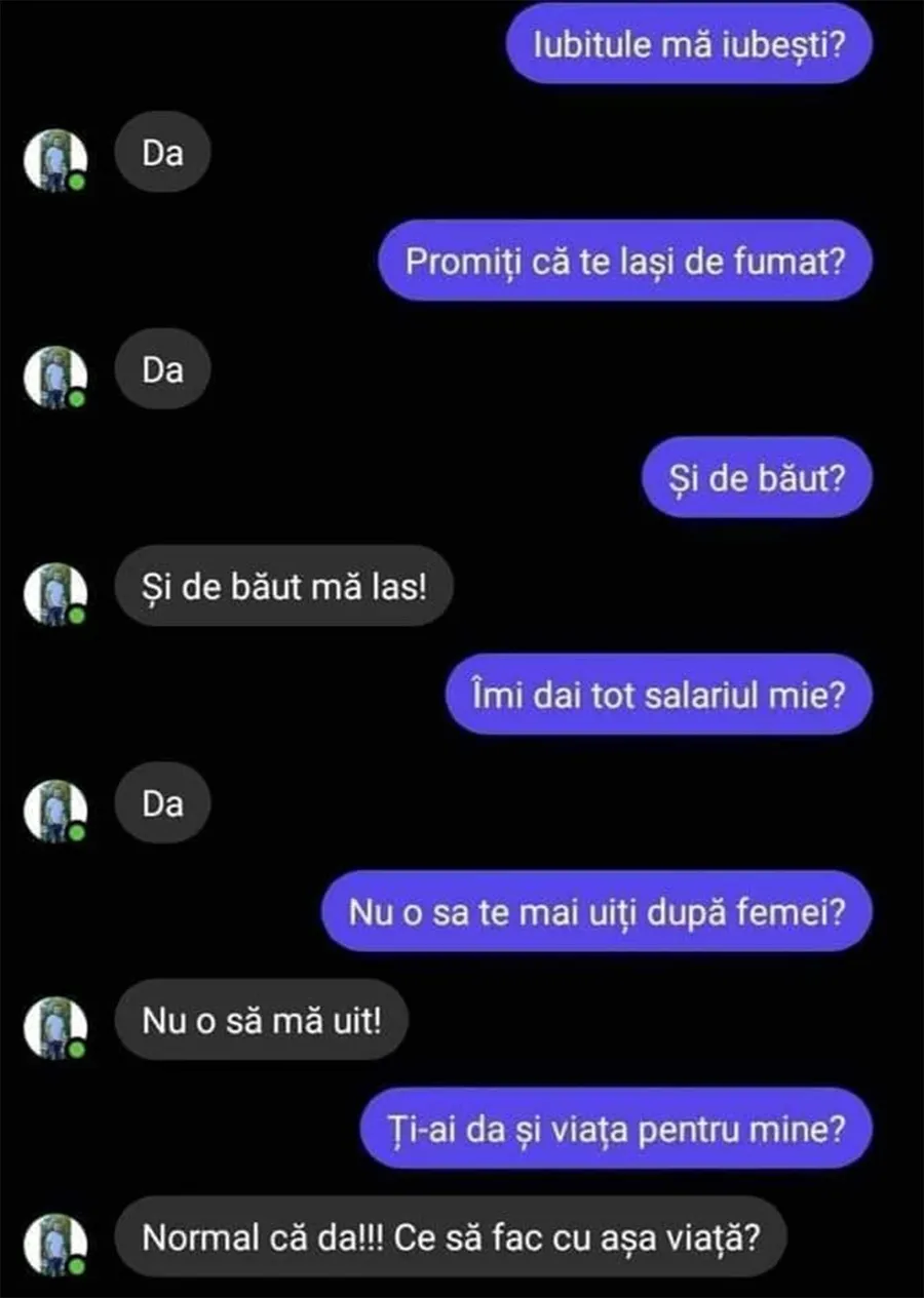 – Normal că da!!! Ce să fac cu o așa viață?”