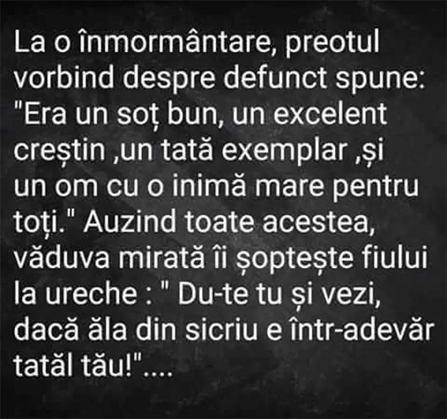 La o înmormântare, preotul vorbind despre defunct spune: