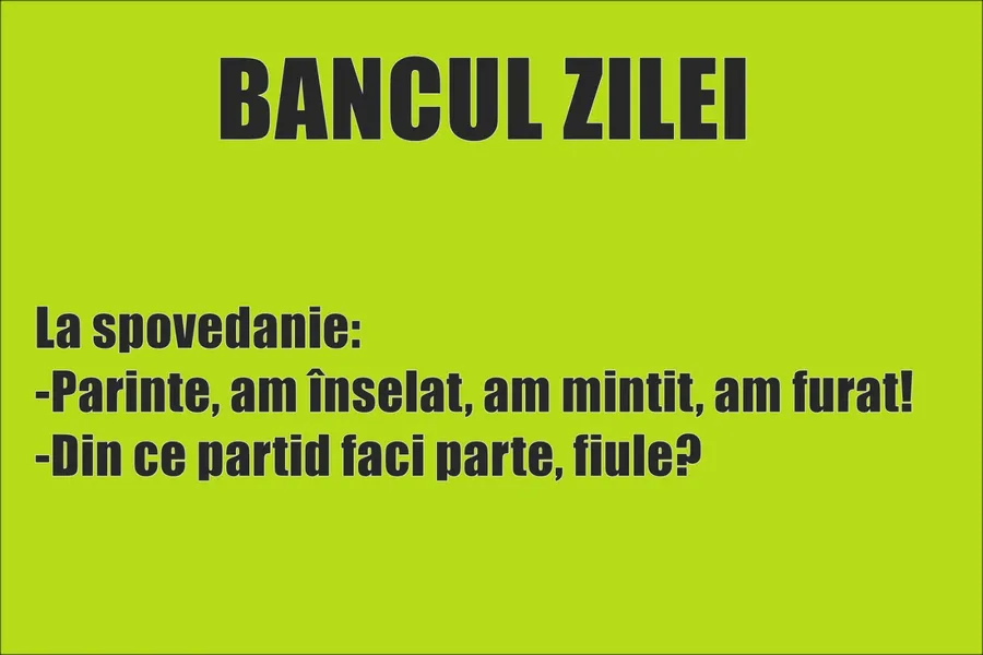 Zâmbetul este întotdeauna cea mai bună terapie atunci când vine vorba despre stres sau oboseală. Ei bine, astăzi vă prezentăm un banc ce vă va face să râdeți în hohote. Bancul zilei este despre un român care merge să se spovedească. În fața preotului, acesta recunoaște că a înșelat, a mințit și a furat. Răspunsul preotului este neașteptat și stârnește amuzamentul, fără îndoială!